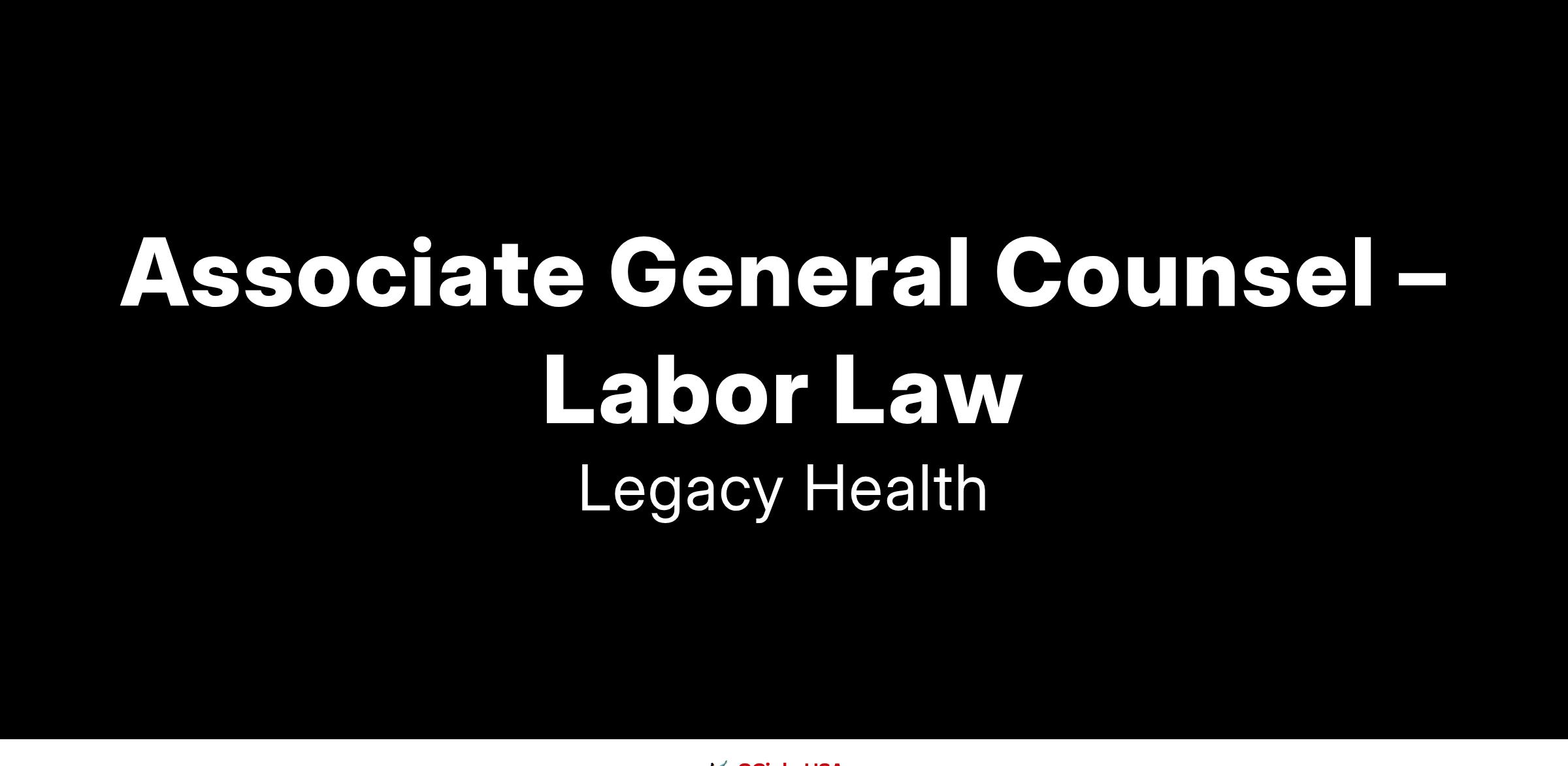 As an expert in a broad range of legal issues affecting health care providers with significant transactional and/or litigation experience, the Associate General Counsel provides legal advice, counsel, and representation of Legacy Health to ensure conformity with applicable laws and regulations. The Associate General Counsel manages all areas of legal compliance; litigation; contract negotiation and preparation, review, and development; and/or other areas as assigned by the Senior Vice President, Chief Legal Officer. The Associate General Counsel deals with highly confidential matters. Assignments usually involve unique or complex legal issues. The Associate General Counsel exercises a high degree of independent judgment, sets his or her own objectives with guidance from the Senior Vice President, Chief Legal Officer, and decides how to proceed to resolve difficult problems while following Legacy and Legal Services policies.