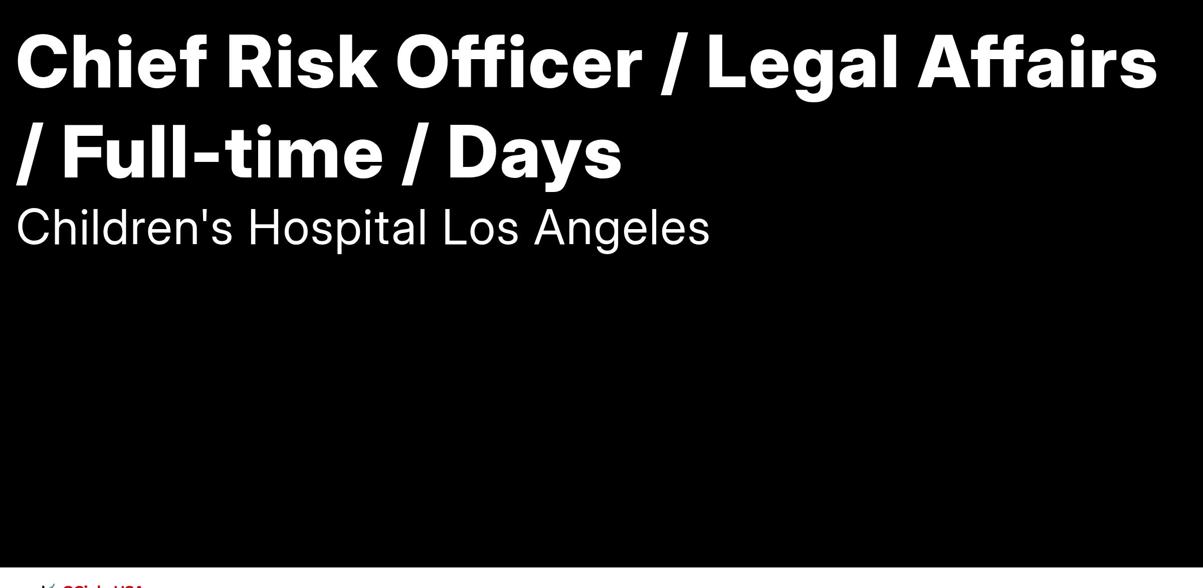 The Chief Risk Officer (“CRO”) of CHLA is responsible for providing strategic and operational leadership to the hospital in the assessment and mitigation of significant and developing enterprise risks. This pivotal leadership role is directly accountable for contributing to audit functions, business continuity, claims management, insurance, physical security, integrated risk management and all other active and emergent risks facing CHLA.